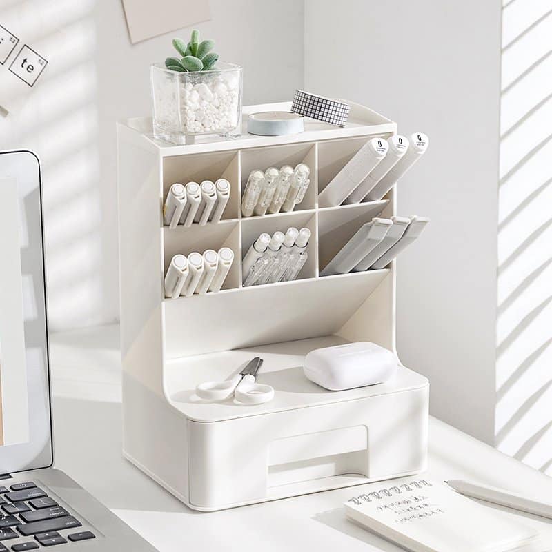 Obliquely Inserted Pen Holder Desktop Clutter Desk Storage Box