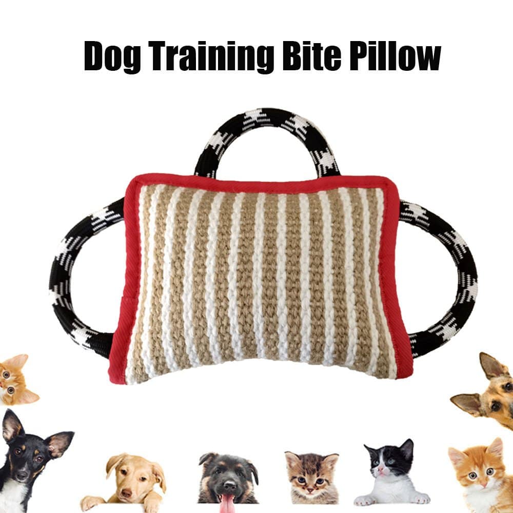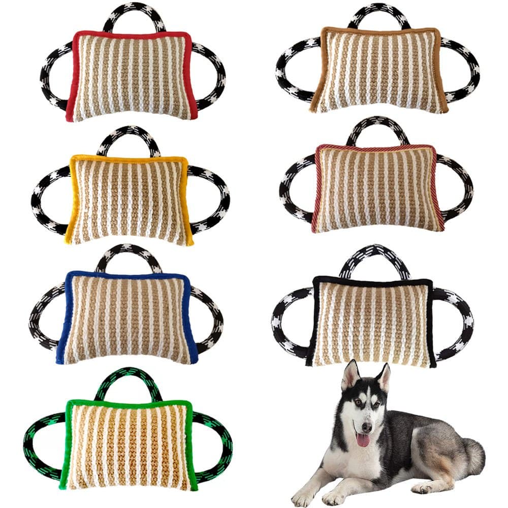 Dog Rope Toys Dog Jute Bite Pillow With 3 Strong Handles Tug Of War Dog Toy Perfect Pull Toy For Medium Large Dogs Training Interactive Playing