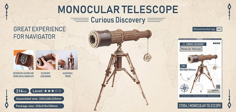 Robotime ROKR Monocular Telescope 3D Wooden Puzzle Game Assembly Toys for Children Teens Adult Birthday Christmas Gift Dropship